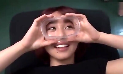 Japanese girl gets jizm goggles treatment