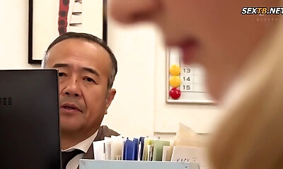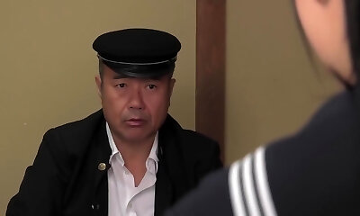 Old man takes advantage of a big Titty Japanese female