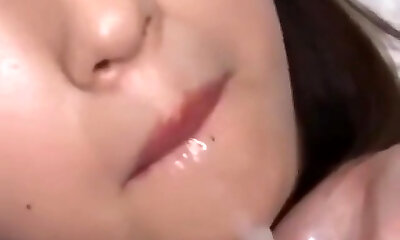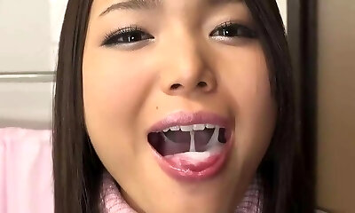 Japanese sweetie swallows a huge mouthful of cum