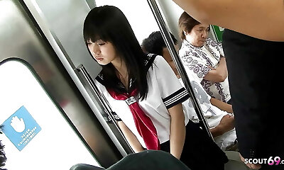 Asian slut gets crammed in a crowded public bus