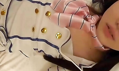 Cute 18 year older dark-haired Japanese gets creampied in her naughty uniform and shaved muff. There is also a blowjob. U